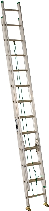 QUICKLATCH equipped runglock provides easier method of securing fly base sections when extended. Heavy-duty plated steel swivel safety shoes with thick rubber tread. Shoe can be used with tread down or in spike position. Tempered, serrated aluminum D-shaped rungs provide for a slip-resistant surface. Side rails are full 3″ extrusions shaped into a modified I-beam for strength and light weight. Interlocking rails keep fly and base sections from coming apart. Meets or exceeds the safety standards set by ANSI and OSHA. ProGrip- integrated surface protector with non-marring, slip resistant pads and hand grips. Dimensions: 3″ rail depth, 5-1/4″ stack height, 15-1/4″ base inside, 14-5/16″ fly inside, 17-1/8″ base outside and 16-3/16″ fly outside. AE4216PG does not include rope & pulley.