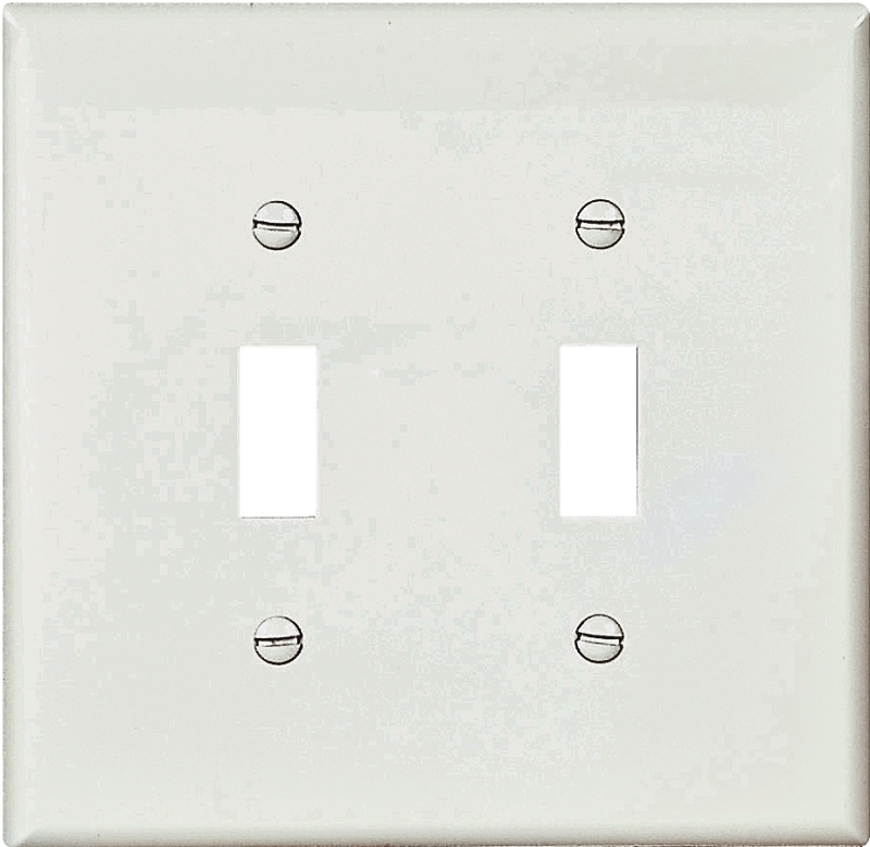 Virtually unbreakable, with high structural rigidity, long-term form retention and impact and abrasion resistance. Screw-catch feature holds mounting screws captive. Matching screws provided. High gloss finish is soil resistant. Mid-size – 4.875″ x 4.938″.