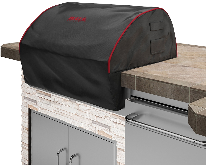 Heavy duty vinyl construction. Strap ties for added fit. Fits Bull Brahma Built-In grill heads (Orgill skus 906.8727 and 906.8735).