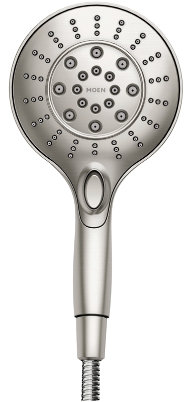 Spot resistant brushed nickel finish resists fingerprints and water spots for a cleaner looking bath, 5.5″ diameter spray head handshower, magnetix technology features an innovative magnetic docking system, six-function combination spray for more variety, limited lifetime warranty, it’s a snap to use(tm). easy release and return with magnetix(tm) docking system, even with you eyes closed, customize your shower at the push of a button by clicking through six optimized settings, always docks facing forward to avoid exterior splashing outside your shower, features a kink-free metal hose that extends reach and flexibility. 2.0 gpm.
