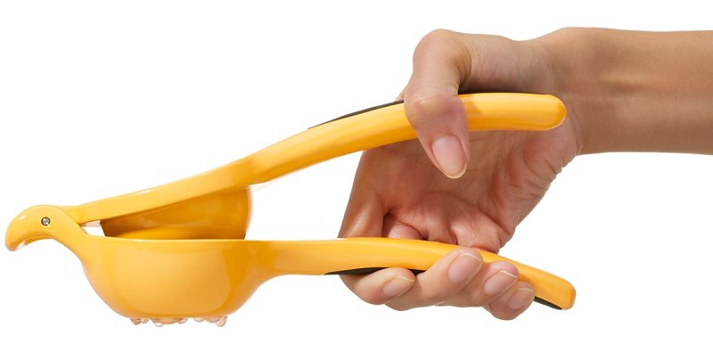 The OXO Citrus Juicer in yellow is a highly efficient and user-friendly juicer that produces 20% more juice than conventional models. With its ergonomic handle, stable wider feet, and convenient hang loop for easy storage, this top-rack dishwasher safe juicer makes extracting fresh citrus juice effortless.