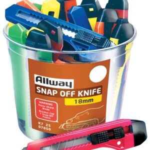 Die cast all metal construction. Blade knob to lock blade in place for heavy duty applications. Diamond shaped texturing provides a sure grip. Textured die cast finish for positive slip-resistant grip. Stainless steel 4 blade cartridge.