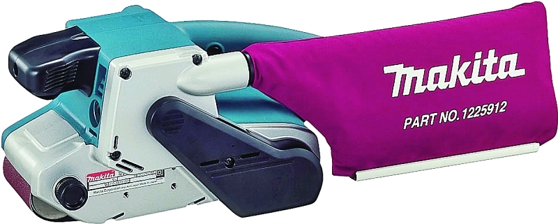 Variable speed control dial matches the speed to the application, auto tracking belt system, sands flush to wall with nose and side of sander, front grip, dust bag. Specs: 120V, only 85dB, ft./min. 690-1,440 , 11-5/8″L, 16.4 ft. power cord, double insulated, weight 9.5 lbs. Includes: (1) #80 abrasive belt, dust bag.