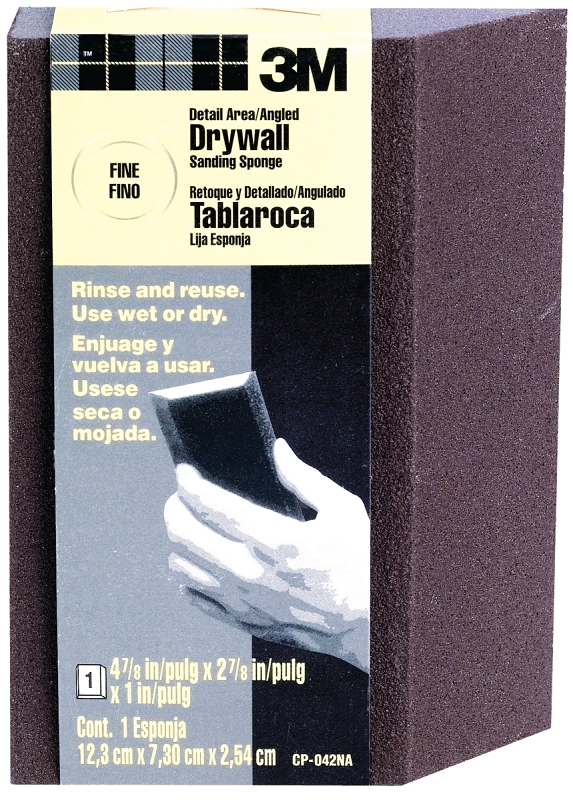 3M Detail area/angled drywall sanding sponge is ideal for sanding drywall and plaster during spot repair. When finished, simply rinse and reuse. Available in fine grade.