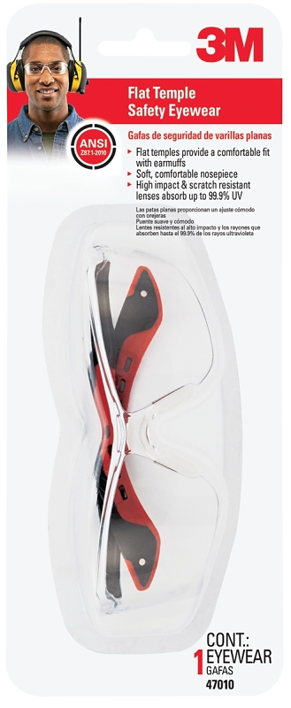 Streamlined and modern, the 3M flat temple safety eyewear delivers a low-profile fit for exceptional comfort. The lightweight, wraparound design sits close to your face creating a comfortable fit, while the streamlined lens size lets your crew and customers see you, not your eyewear. The tough, one-piece lens helps keep dirt and debris in check and the soft, flexible nose pads rest comfortably on your nose for a barely-there feel. The pliable arms are designed extra slim, so you can add hearing protection while minimizing the pressure. Ditch the excuses and give your eyes the protection they deserve with 3M flat temple safety eyewear.