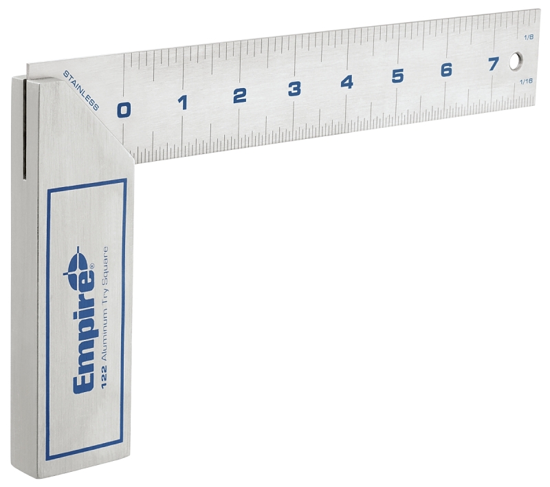 Stainless steel etched blade prevents rust and corrosion. Etched markings. Heavy-duty aluminum billet handle. Inch graduations.
