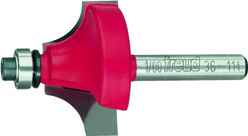 Bits will produce an attractive bead profile to furniture and millwork. Special shear angle causes the bit to slice the wood for a clean cut every time. Cut composition materials, plywood, hard wood and soft woods. Use on hand held and table mounted portable routers. Nos. 36-110 and 36-112, 1/2” small diameter. 3/8″ bearing diameter.