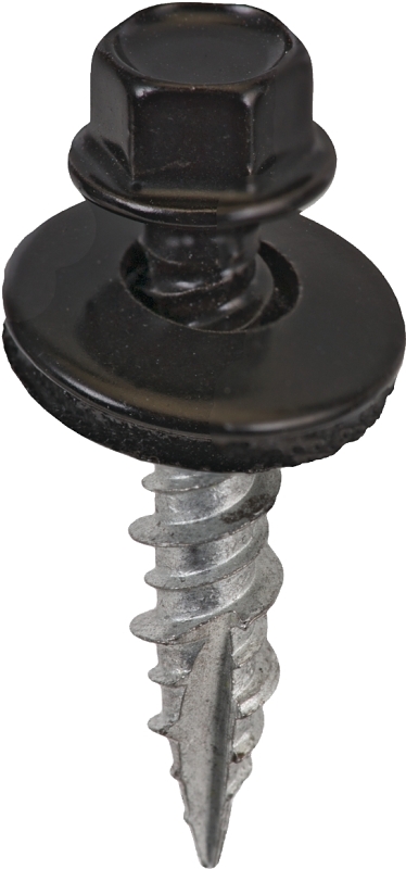 #9-15 Metal-to-wood screws are sealing self-piercing tapping screws made from heat treated Steel, case hardened for roofing and siding applications. A 1/4 in across flats high hat hex washer head with assembled EPDM washer offers easy driving and conforms to the metal surface for a secure and long-lasting seal. The twin lead type 17 point and hi-lo threads offer faster drive time and greater resistance to pullout. All screws are 1000 hr salt spray test dacro-coated. Colored screws are powder-coated over the dacro base coating. All Acorn International screws are packed 250 pieces in a heavy-duty tear-off resealable bag, UPC-coded and retail ready. All bag and carton labels are trilingual. Cartons are heavy-duty cardboard of uniform size and distinctive yellow color for better retail identity.