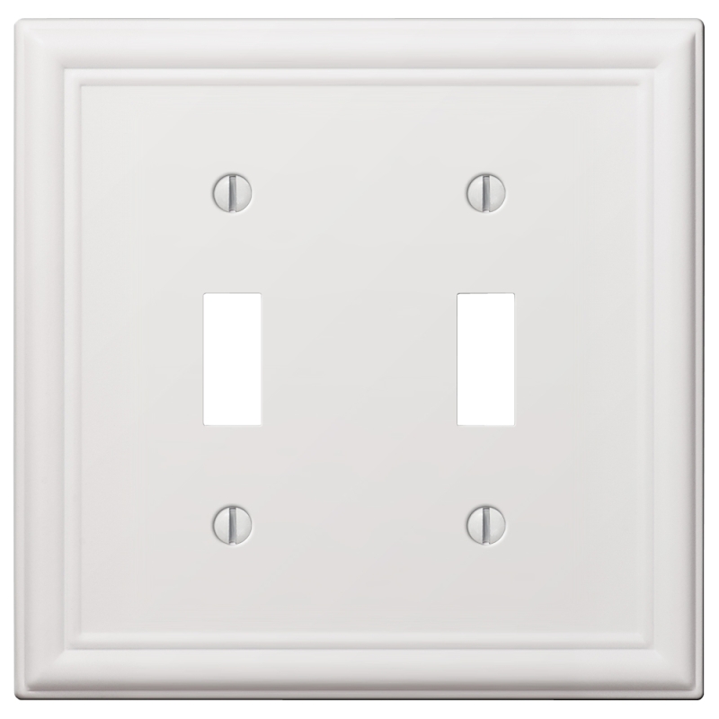 Amerelle Wallplate, 2 Gangs, Steel, White, 4-7/8 in Length, 4-15/16 in Width, Screw Mounting