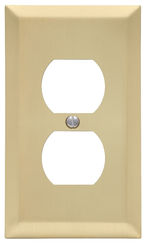 Amerelle Receptacle Wallplate, Duplex, 1 Gangs, Screw Mounting, Steel, Satin Brass, 5 in Length, 2-7/8 in Width, 1/4 in Thickness