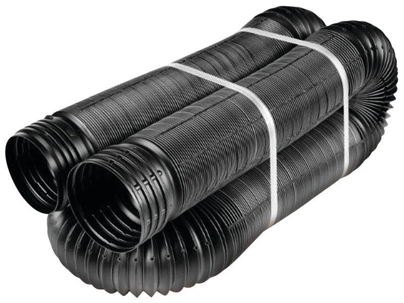 Exceeds ASTM standards and is made with no-break copolymers for professional-grade strength and integrity. Proprietary peak and valley design offers greater surface area and a 30% higher load-bearing rating than standard corrugated pipe. Perforated pipe with sock is ideal for French drain application in fine soil. Fittings available to adapt to 3 or 4 in, corrugated pipe and 4 in PVC. Ideal for tight spaces and curvy places, taping joints is not necessary. This pipe has spaced slits, so water drains in stages. It’s also ideal for applications such as French drains or dispersing water from flower beds, but works even better in locations where surrounding soil or sand is fine and requires filtration or where debris is considerable.