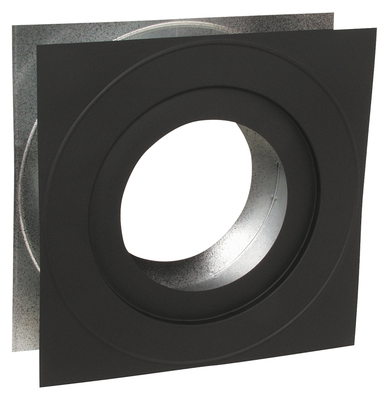Used with tee branch and chimney section to provide proper clearance to combustible materials. Matte black painted surface for interior wall eliminates need for trim plate.