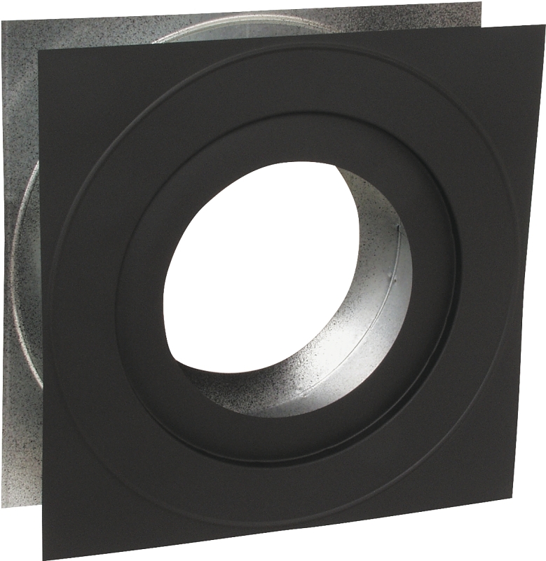 Used with tee branch and chimney section to provide proper clearance to combustible materials. Matte black painted surface for interior wall eliminates need for trim plate.