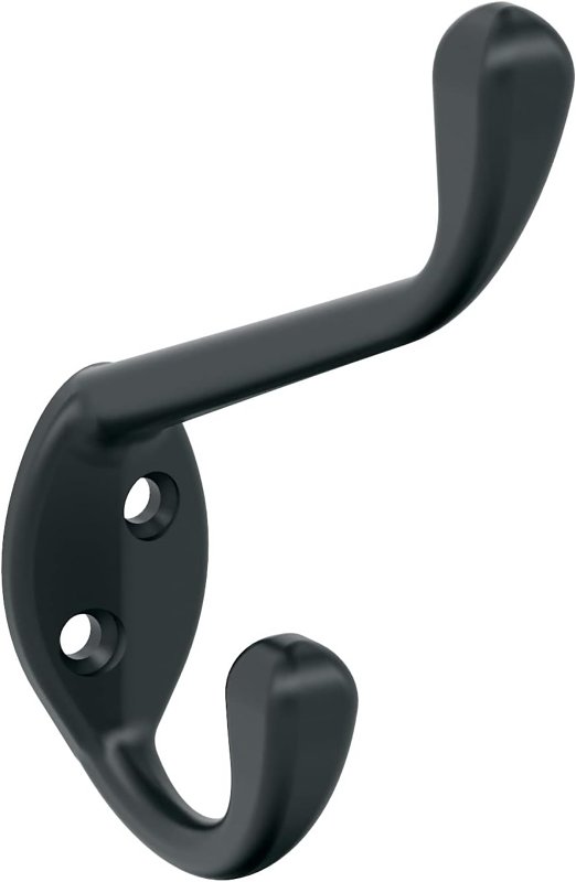 Amerock Noble Series H55451MB Double Prong Wall Hook, 7/16 in W, Zinc, Matte, 25 lb, 3-9/16 in Projection