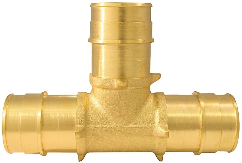 Apollo ExpansionPEX tees are manufactured using lead-free dezincification-resistant brass. Exclusively designed for use with PEXa pipe, the fittings offer a larger ID than traditional crimp fittings for full flow resulting in fast delivery of potable water.