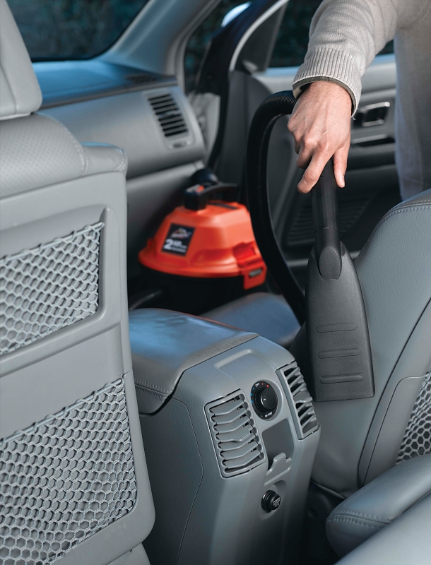 This portable Armor All utility vac is specifically designed to clean the interior of your car and handles both wet and dry pickup. Includes all accessories for complete interior cleaning and easily converts to a blower to dry motorcycles, car grills and wheels. It also has an automatic shut-off to prevent overflow and a built-in air and noise diffuser for efficient and quiet operation. It also features a 10 ft power cord with cord wrap, on-board accessory, hose storage and a dust sealed switch. It includes a 6 ft x 1-1/4 in hose, reusable foam filter sleeve, 2-in-1 utility nozzle, crevice tool, blower nozzle/adapter, deluxe car nozzle and a car detail brush.