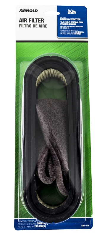 Replaces BRIGGS & STRATTON No 394019. With precleaner form filter wrap BRIGGS & STRATTON No 271271. Fits 12.5 to 20 hp. Twin cylinder L-head vertical shaft engines. Series No 402700, 421700.