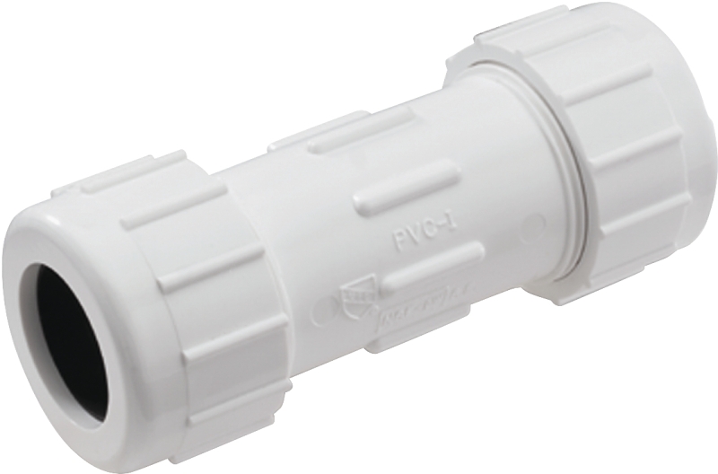 B & K Double Seal Coupling, 3/4 in Nominal, Compression Connection, IPS Thread, 150 psi Pressure, SCH 40 Schedule, PVC, 5 in Length, Includes: (10) Couplings