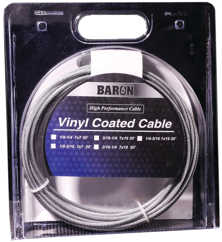 Baron 50215/50215 Aircraft Cable, 1/8 to 3/16 in Dia, 100 ft L, 340 lb Working Load, Galvanized Steel