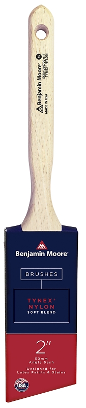 Benjamin Moore Paint Brush, Brush Type: Soft, 2-11/16 in L Bristle, Nylon/Tynex Bristle, 2 in Ferrule, Ferrule Material: Stainless Steel, 7-1/4 in L Handle, Wood Handle, Angle Sash Handle, Suitable for: Latex Paints and Stains