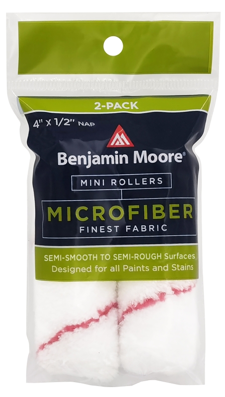 Benjamin Moore Mini Roller Cover, 1/2 in Thick Nap, 4 in L, Microfiber Cover, 1 in Dia Core, Red/White, Surface Type: Semi-Smooth to Semi-Rough, Paint Type: All Paints, Stains