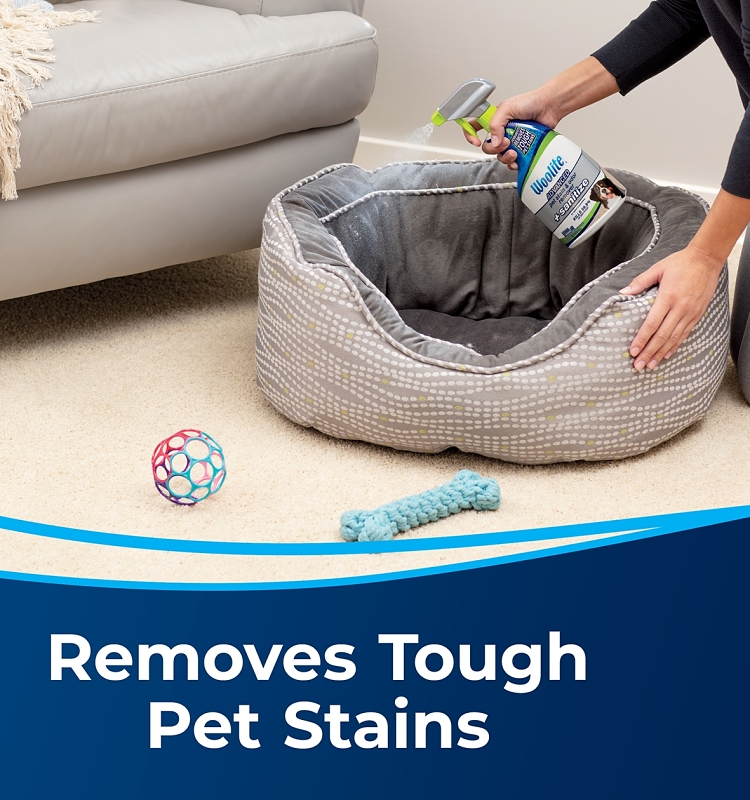 Bissell Woolite Pet Stain and Odor Remover, Liquid, Clear, Odor/Scent: Characteristic, Net Content: 22 oz, Compositions: Hydrogen Peroxide, VOC Content: 0 %, Flash Point: 212 deg F, Boiling Point: 212 deg F, pH Range: 2.5 to 3.5, Specific Gravity: 1
