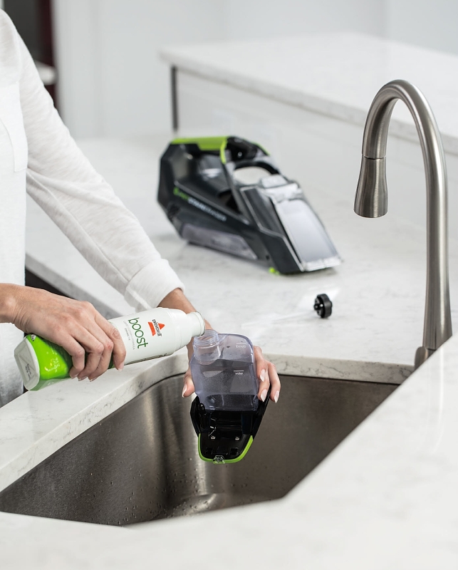 Bissell® Pet Stain Eraser™ cordless portable carpet cleaner is ready anywhere and anytime to remove messes made by your pet. Portable carpet cleaners don’t always let you store the formula in the tank, but this convenient spot cleaner does. It’s a feature that makes cleaning stains on upholstery, stairs, carpet, area rugs, car interiors and more a cinch, especially right when stains happen. It comes with a trial-size bottle of professional spot and stain + oxy formula. This formula works to remove tough pet stains and odors from carpet and upholstery instantly and permanently, giving you cleaning results like you’d get from a professional carpet cleaner company. Tackling the toughest pet stains is easy with Bissell Pet Stain Eraser™, all you need to do is spray the solution and use the built-in brush to scrub and suction the mess into the dirty water tank.