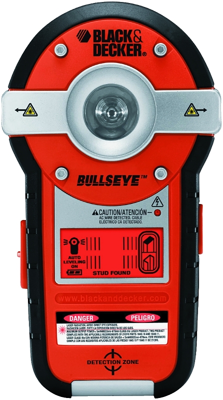 Great for hanging frames and much more, the Bulls Eye® auto-leveling laser is 2 tools in one. A level projects a horizontal laser level line for precise measurements and a stud sensor detects wood, metal studs and live A/C wires behind walls.