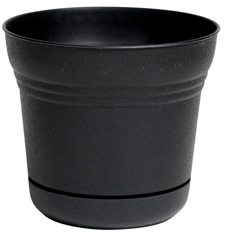 Bloem SP1000 Planter, 9.8 in Dia, 8-1/2 in H, Round, Plastic, Black, Matte