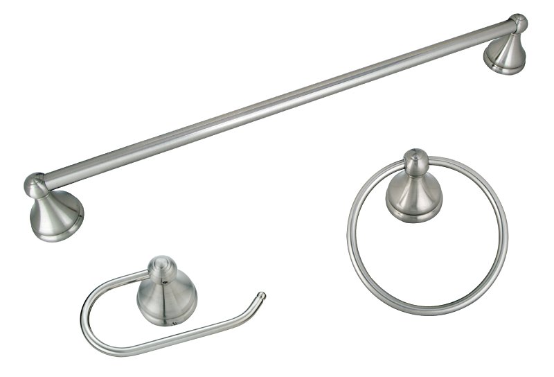 Boston Harbor 3-piece bath accessory set is easily mounted to the wall using simple tools. Includes 24 in towel bar, towel ring, and paper holder.