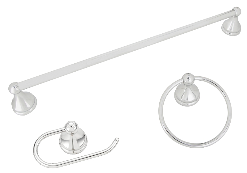 Boston Harbor 3-piece bath accessory set is easily mounted to the wall using simple tools. Includes 24 in towel bar, towel ring, and paper holder.