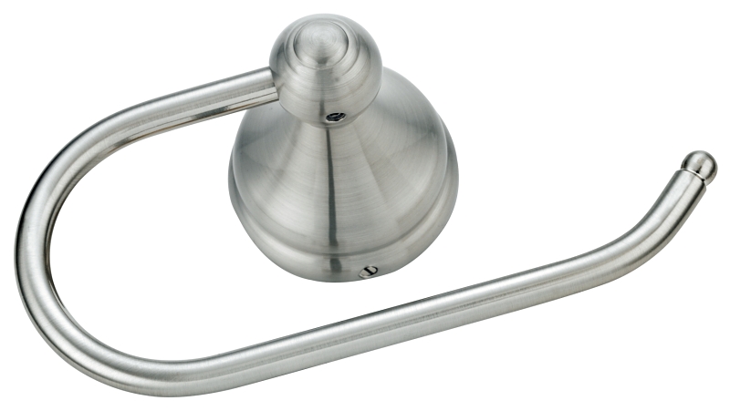 This Boston Harbor paper holder adds a blend of tapered and tiered, delicate and bold style to your bathroom. It’s created with an open-arm, single-post design, this style of paper holder makes changing the roll quick and easy. With durable construction and everything you need for quick installation, the paper holder provides reliable performance. This paper holder complements many bath styles. The brushed nickel finish provides a lightly brushed warm-grey metallic look. It’s suitable for use in the bath as well as the kitchen for hanging towels and more.