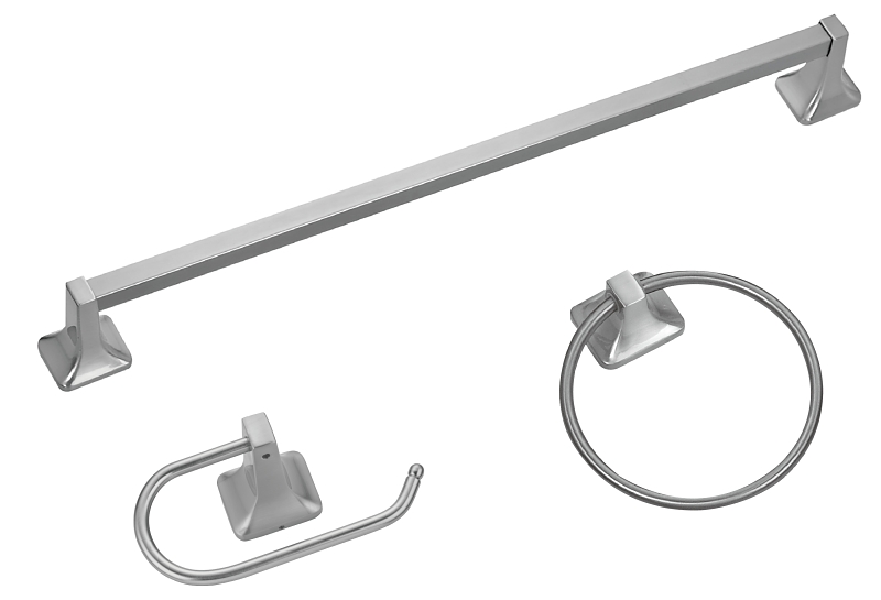 Boston Harbor 3-piece bath accessory set is easily mounted to the wall using simple tools. Includes 24 in towel bar, towel ring, and paper holder.