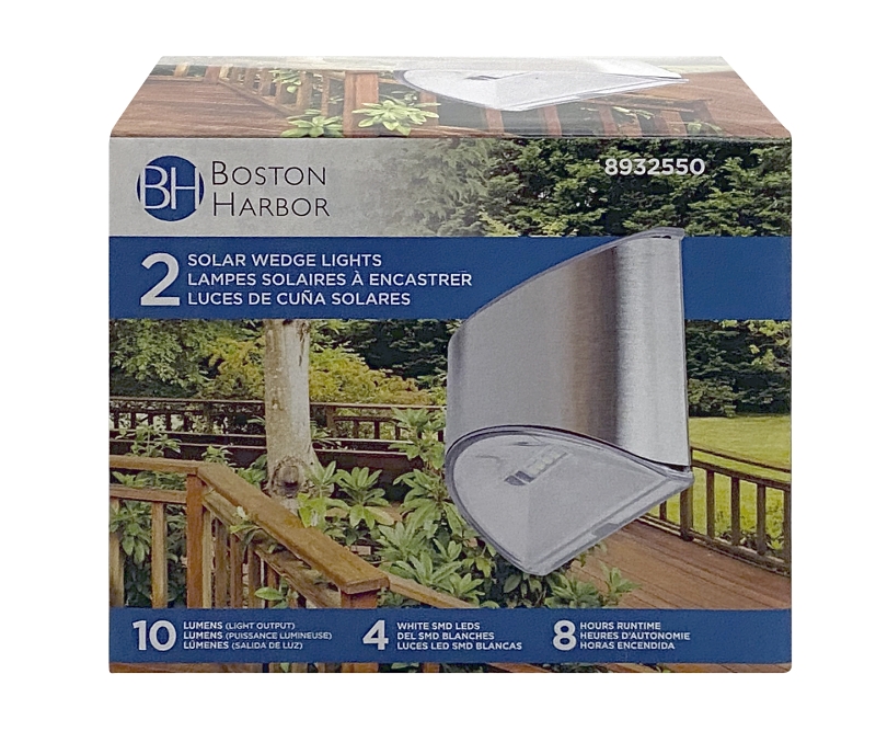 Boston Harbor 26083 Solar Light Wedge Stainless Steel, NI-Mh Battery, AA Battery, 4-Lamp, Stainless Steel