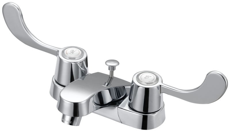 The Boston Harbor lavatory faucet with plastic pop-up is constructed from durable metal with chrome finish. It has a metal ADA complaint handle, polymer waterway, waterless cartridge, 1/2-14 NPSM inlet, 4 in centers, IAMPO and NSF certified and max 1.2 gpm at 60 psi.