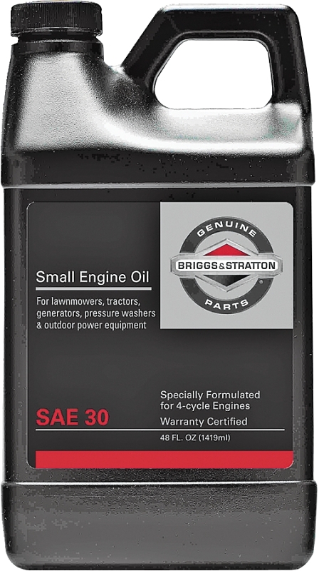 Briggs & Stratton four cycle engine oil. 30 Weight, high quality detergent oil. Specially formulated for higher operating temperatures of air-cooled engines.