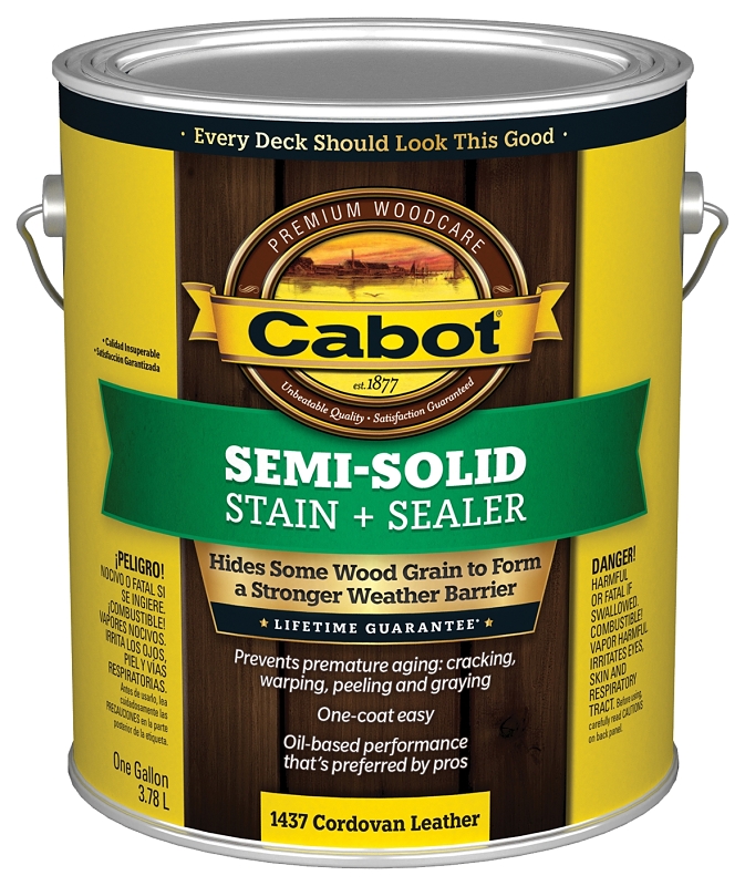 Cabot® Semi-solid deck and siding stains are deep-penetrating linseed oil-based stains that provide long-lasting beauty and wood protection, highlight the natural beauty of the wood’s texture with a uniquely pigmented appearance. With their extra pigmentation, Cabot® deck and siding stains are extremely durable and help protect wood against the sun’s damaging ultraviolet rays.