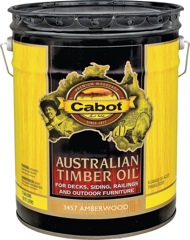 Cabot® Australian timber oil for decks, siding, railings and outdoor furniture is a unique blend of oils originally formulated to protect dense tallow wood, cambara and merbau from the extreme Australian exposures. Australian timber oil penetrates deep into the dense, resin-rich woods to accentuate natural wood depth and patina. Containing a precise blend of superb-grade linseed oil for maximum penetration, long oil alkyds for durability and pure South American tung oil for color depth and water repellency, Australian timber oil delivers three-way oil protection and a beautiful hardwood stain. In addition, complex translucent iron oxide pigments are added to ensure a lasting UV absorbing surface rich with color and dimension. The result after years of development is an advanced technology treatment of unrivaled performance designed to protect your exotic wood surfaces like never before.
