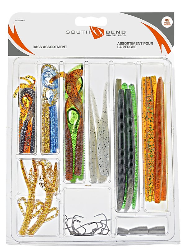 Calcutta 42-Piece Bass Lure Kit, Includes: Slo-Fall Worms, Ribbon Tail Worms, Jerk Shads, Creature Baits, Beads, Worm Hooks and Steel Worm Weights