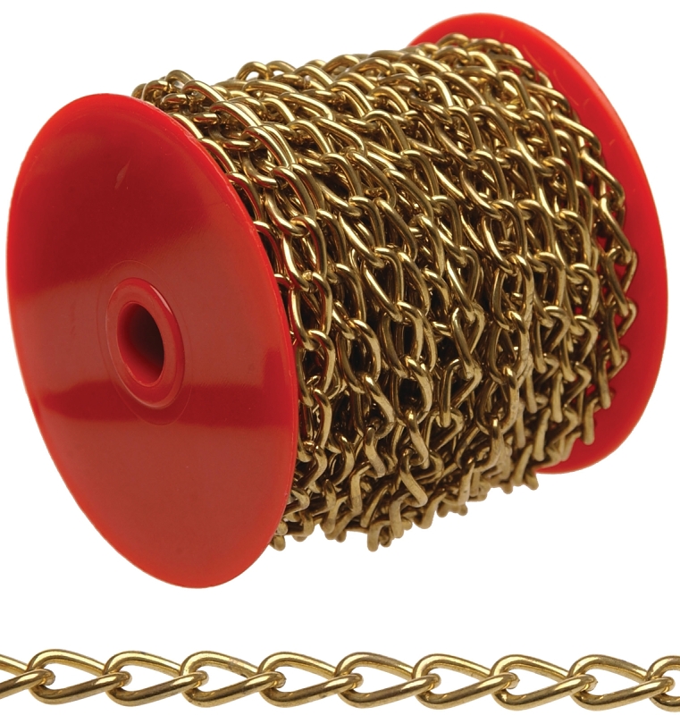 Campbell Twist Chain, Working Load Limit: 12 lb, Trade Size: 200, Inside Link Width: 0.16 in, Inside Link Length: 0.4 in, Brass, Material Diameter: 0.079, 49 ft L