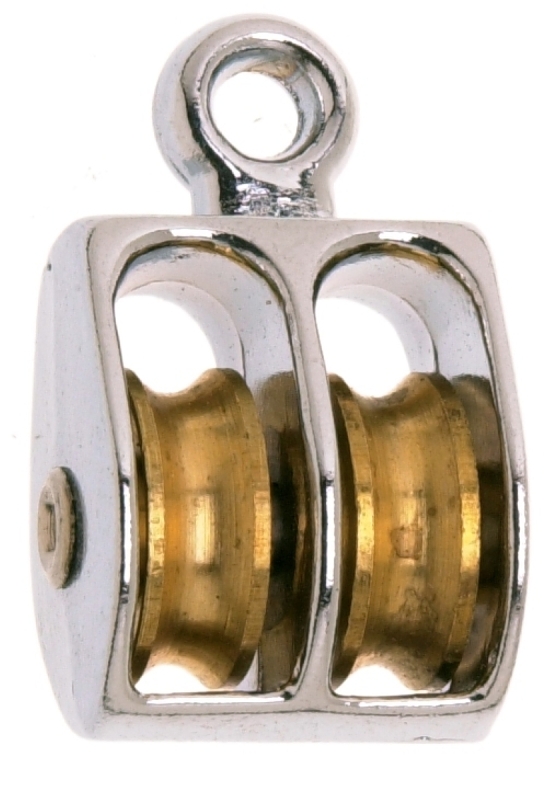 Campbell Pulley, Single Sheave, Working Load Limit: 55 lb, Eye Diameter: 7/32 in, Rope Size: 5/16 in, Sheave Size: 1 in, Sheave Material: Brass, Block Material: Zinc, Nickel