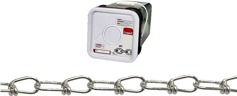 Campbell Double Loop Chain, Working Load Limit: 255 lb, Trade Size: #2/0, Low Carbon Steel, Zinc, Silver, Material Diameter: 9/64 in, 275 ft L