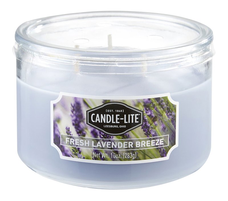 Candle-Lite Scented Candle with Acetate Lid, 3-Wick, Candle Material: Wax, Candle Color: Violet, Candle Size: 10 oz, Fragrance: Fresh Lavender Breeze, Burning Time: 40 hr, Holder Type: Jar