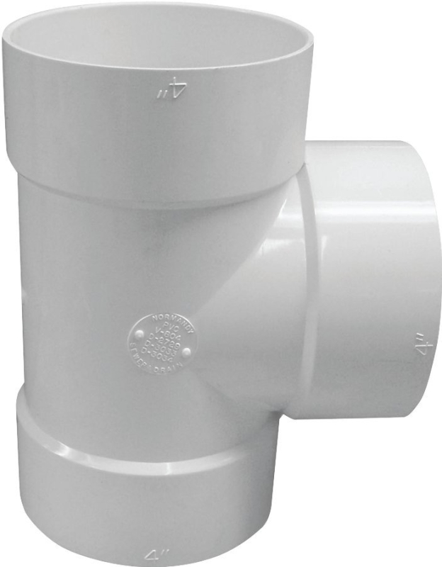 Canplas Bullnose Pipe Tee, Nominal Size: 6 x 4 in, Hub Connection, PVC, White