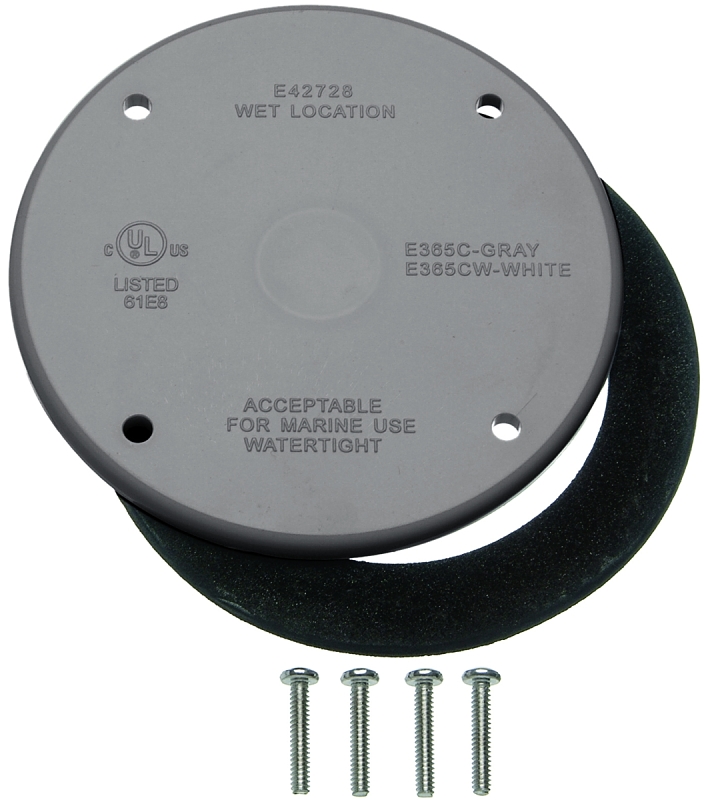 Carlon E365C-CAR Cover, 4 in Dia, Round, PVC, Gray
