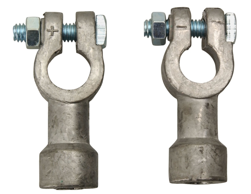 Converts top post terminal battery to a side terminal battery. Marked “+” and “-” for easy identification. Works with battery cables 6 to 1 ga. 6 and 12 V only. Package contains one positive and one negative adapter.