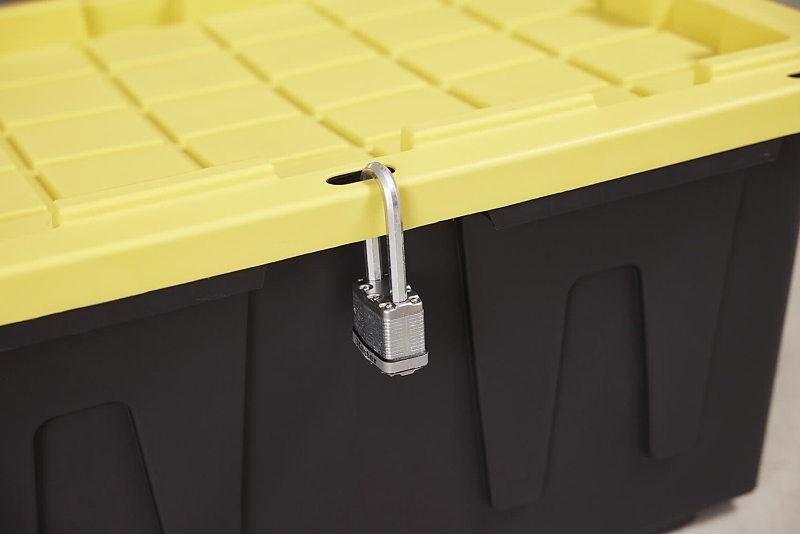 BLACK & YELLOW 27 Gallon Tough Box Storage Tote w/ Secure Snap Lid, Stackable, Nestable.