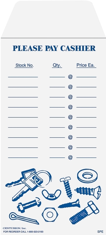 Our 3-1/2 in x 6-1/2 in non-personalized small parts envelope is the solution to packing and pricing the smallest of items. Ideal for keys, screws, bolts, chains and more.