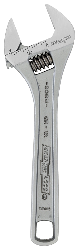 Channellock WIDEAZZ Series 806W Adjustable Wrench, 6-1/4 in OAL, 0.94 in Jaw, Steel, Chrome, Plain-Grip Handle