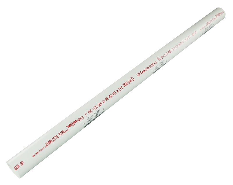 Charlotte Pipe Pipe, Nominal Size: 1 in, 2 ft L, 450 psi, Operating Temperature: 32 to 140 deg F, Schedule Rating: SCH 40, PVC, White
